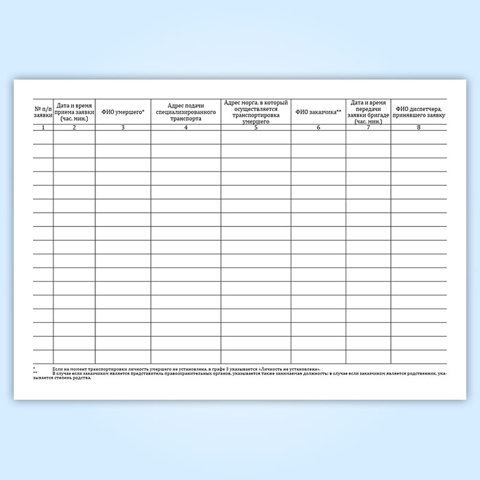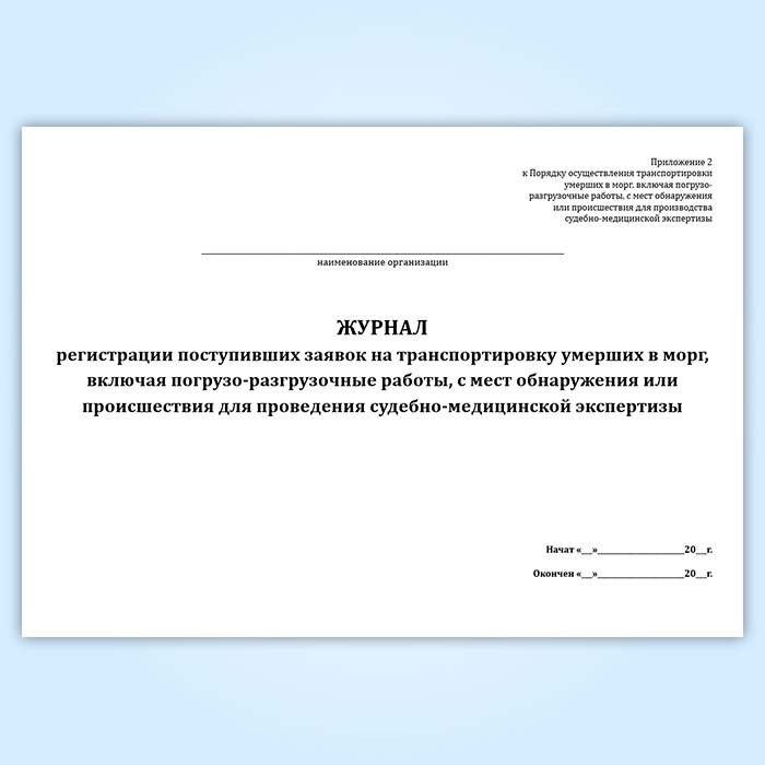 Журнал регистрации поступивших заявок на транспортировку умерших в морг, включая погрузо-разгрузочные работы, с мест обнаружения или происшествия для проведения судебно-медицинской экспертизы в Волгограде купить