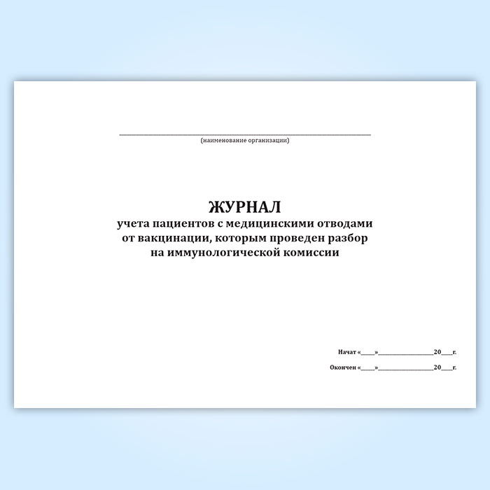 Журнал учета пациентов с медицинскими отводами от вакцинации, которым проведен разбор на иммунологической комиссии в Волгограде купить