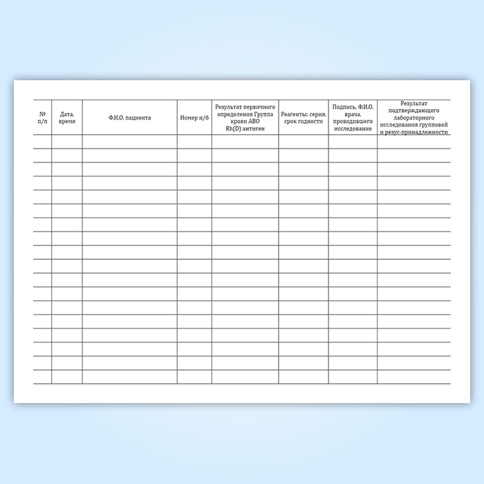 Журнал регистрации первичного определения группы крови в Волгограде купить