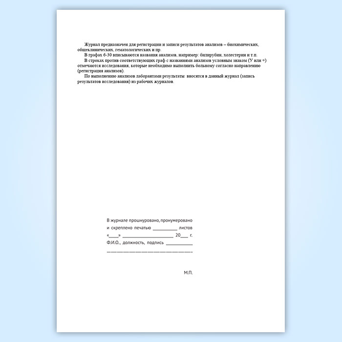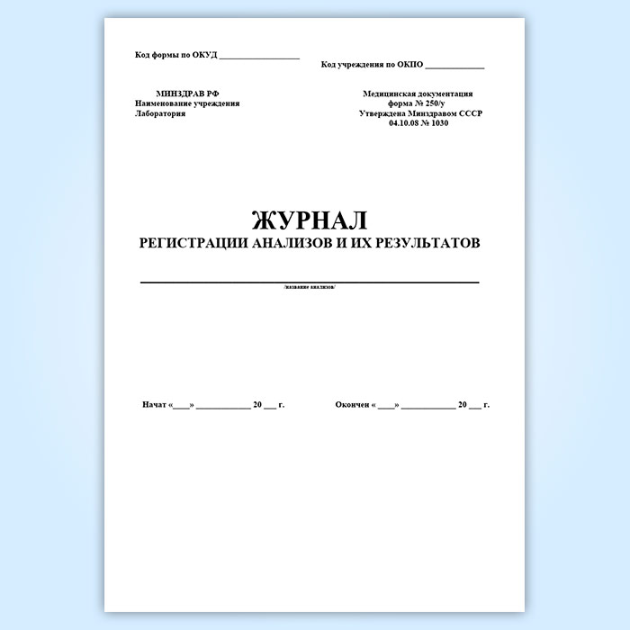 Журнал регистрации анализов и их результатов (форма 250/у) в Волгограде купить