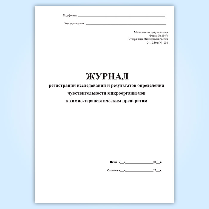 Журнал регистрации исследований и результатов определения чувствительности микроорганизмов к химио-терапевтическим препаратам (форма 254/у) в Волгограде купить