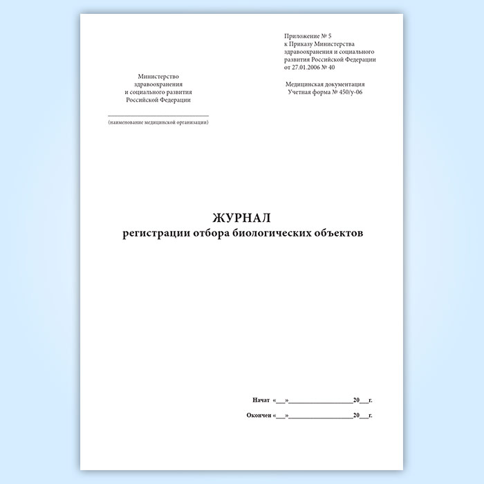 Журнал регистрации отбора биологических объектов (форма 450у-06) в Волгограде купить