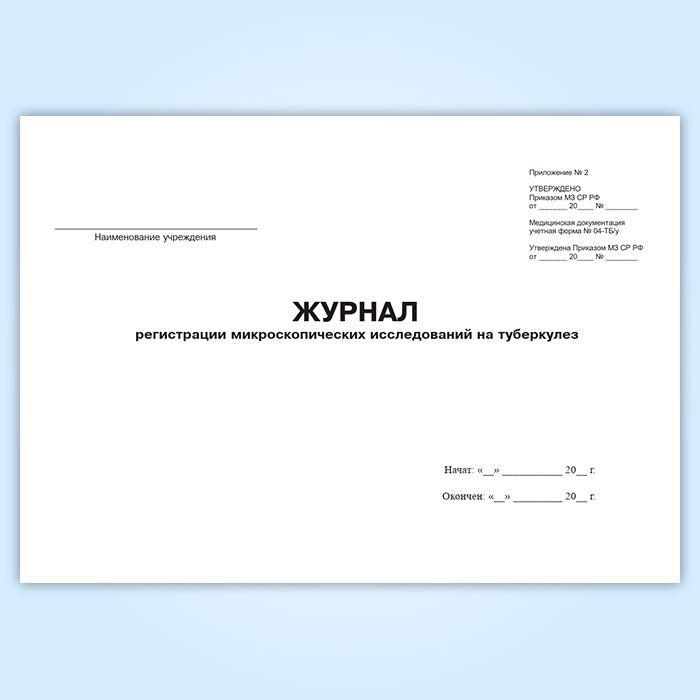 Журнал регистрации микроскопических исследований на туберкулез (форма 04-ТБ/У) в Волгограде купить