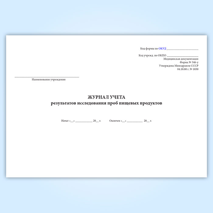 Журнал учета результатов исследования проб пищевых продуктов (форма 346/у) в Волгограде купить