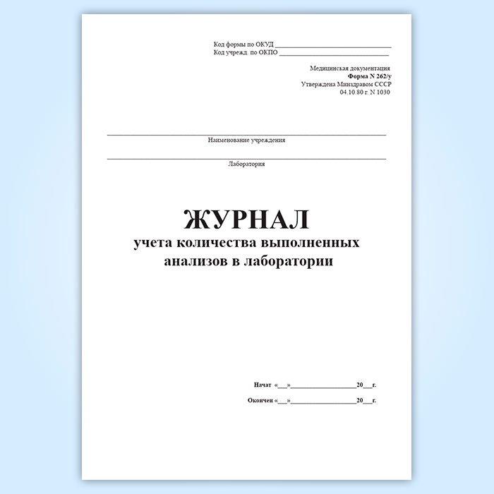 Журнал учета количества выполненных анализов в лаборатории (форма 262/у) в Волгограде купить