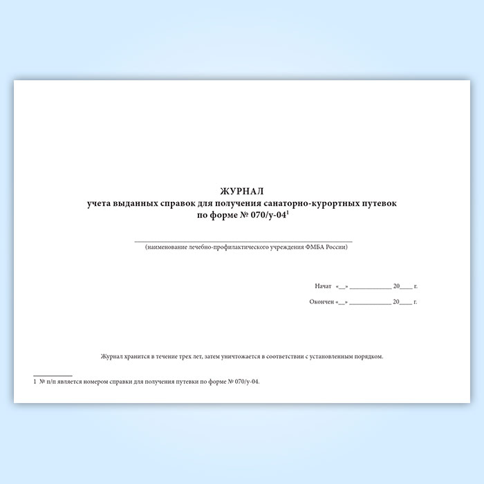 Журнал учета выданных справок для получения санаторно-курортных путевок (форма № 070/у-04) в Волгограде купить