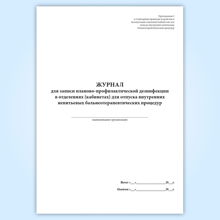 Журнал для записи планово-профилактической дезинфекции в отделениях (кабинетах) для отпуска внутренних непитьевых бальнеотерапевтических процедур в Волгограде купить
