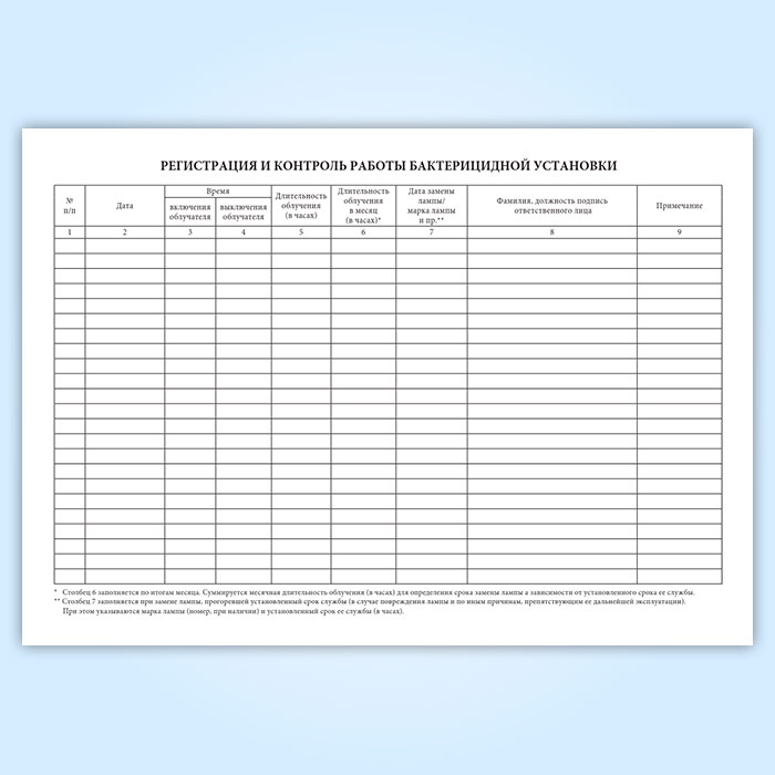 Журнал регистрации и контроля ультрафиолетовой бактерицидной установки (А4) в Волгограде купить
