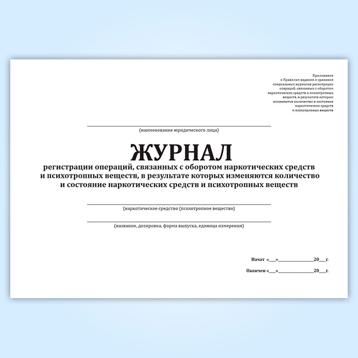 Журнал регистрации операций, связанных с оборотом наркотических средств и психотропных веществ, в результате которых изменяются количество и состояние наркотических средств и психотропных веществ в Волгограде купить
