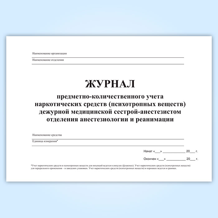 Журнал предметно-количественного учета наркотических средств (психотропных веществ) дежурной медицинской сестрой-анастезистом отделения анастезиологии и реанимации в Волгограде купить