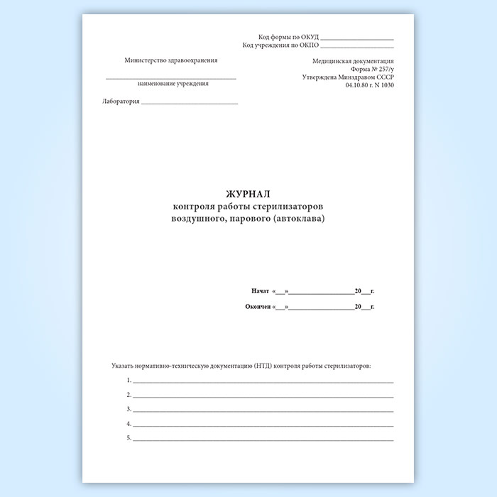 Журнал контроля работы стерилизаторов воздушного, парового (автоклава) (форма 257/у) в Волгограде купить