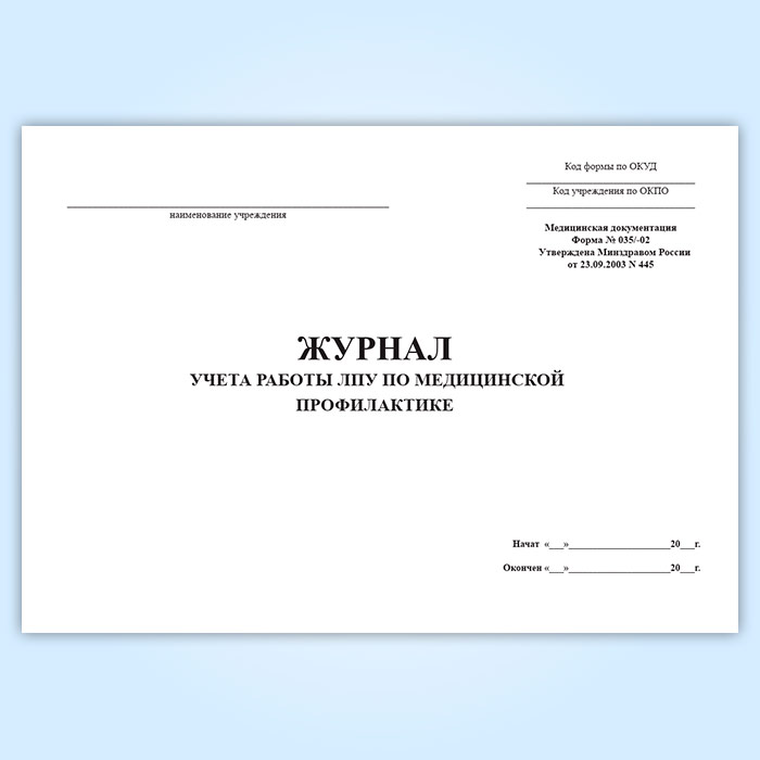 Журнал учета работы ЛПУ по медицинской профилактике (форма № 035/-02) в Волгограде купить