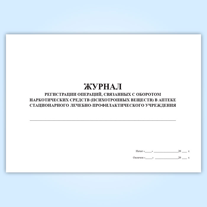 Журнал регистрации операций, связанных с оборотом наркотических средств и психотропных веществ в аптеке медицинской организации в Волгограде купить