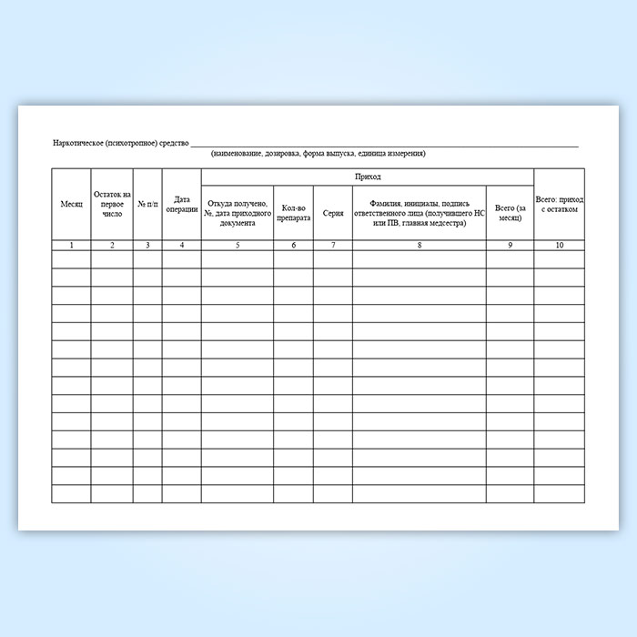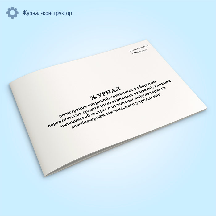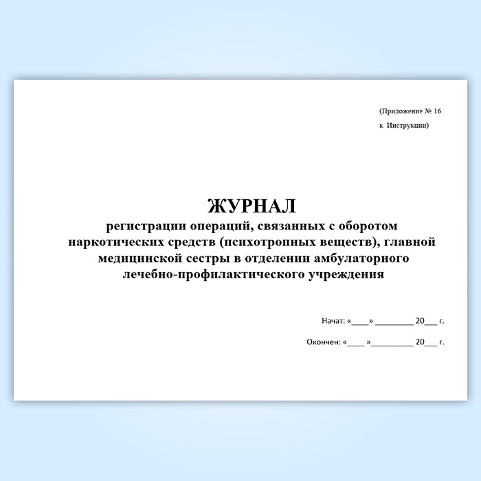 Журнал регистрации операций, связанных с оборотом наркотических средств (психотропных веществ), главной медицинской сестры в отделении амбулаторного лечебно-профилактического учреждения в Волгограде купить