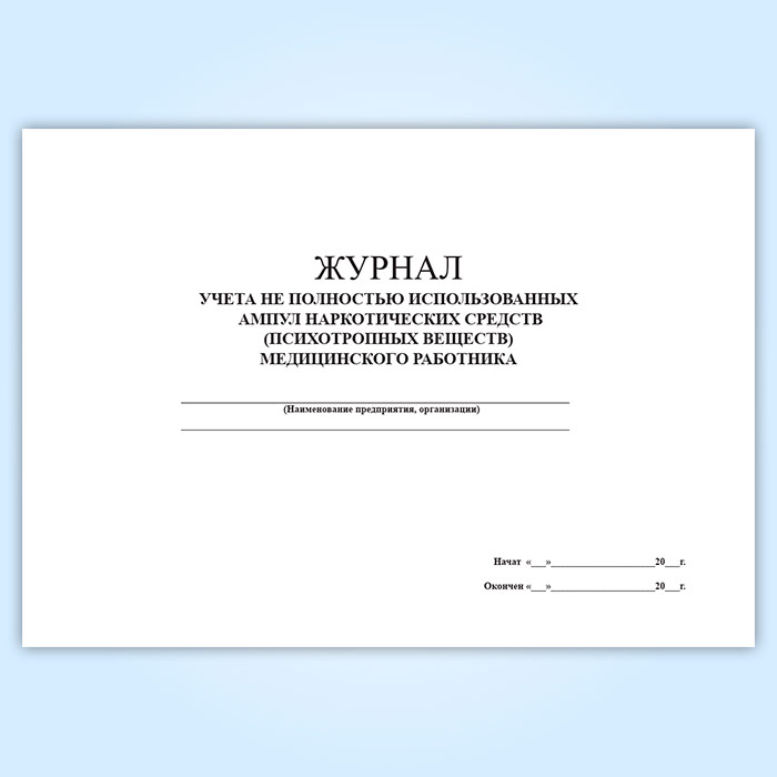 Журнал учета не полностью использованных ампул наркотических средств (психотропных веществ) медицинского работника в Волгограде купить