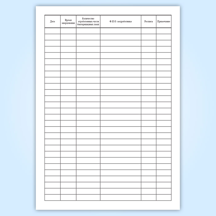 Журнал регистрации и контроля работы бактерицидной лампы в Волгограде купить