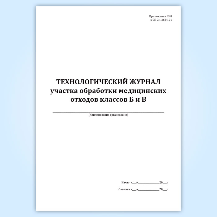 Технологический журнал участка обработки медицинских отходов классов Б и В в Волгограде купить