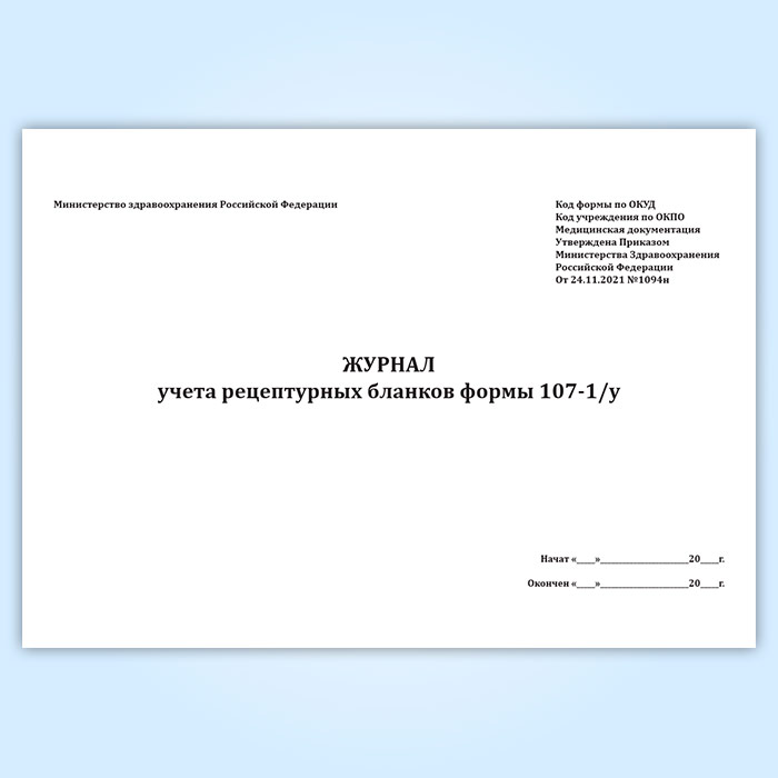 Журнал учета рецептурных бланков формы 107-1/у (новый) (Приказ Минздрава России от 24.11.2021 N 1094н) в Волгограде купить