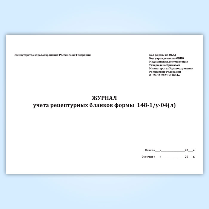 Журнал учета рецептурных бланков формы 148-1/у-04(л) (новый) (Приказ Минздрава России от 24.11.2021 N 1094н) в Волгограде купить