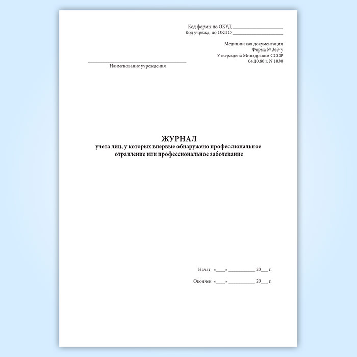 Журнал учета лиц, у которых впервые обнаружено профессиональное отравление или профессиональное заболевание (форма 363-у) в Волгограде купить