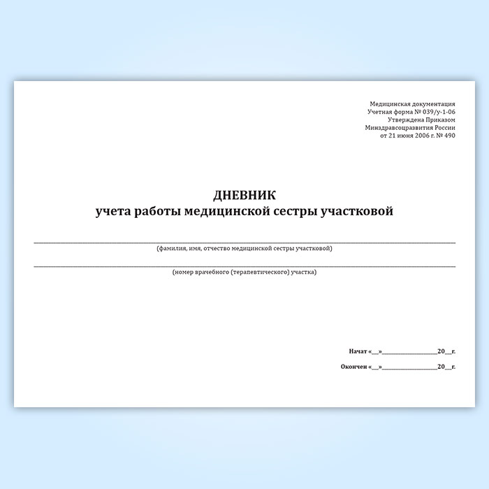Дневник учета работы медицинской сестры участковой (форма 039/у-1-06) в Волгограде купить