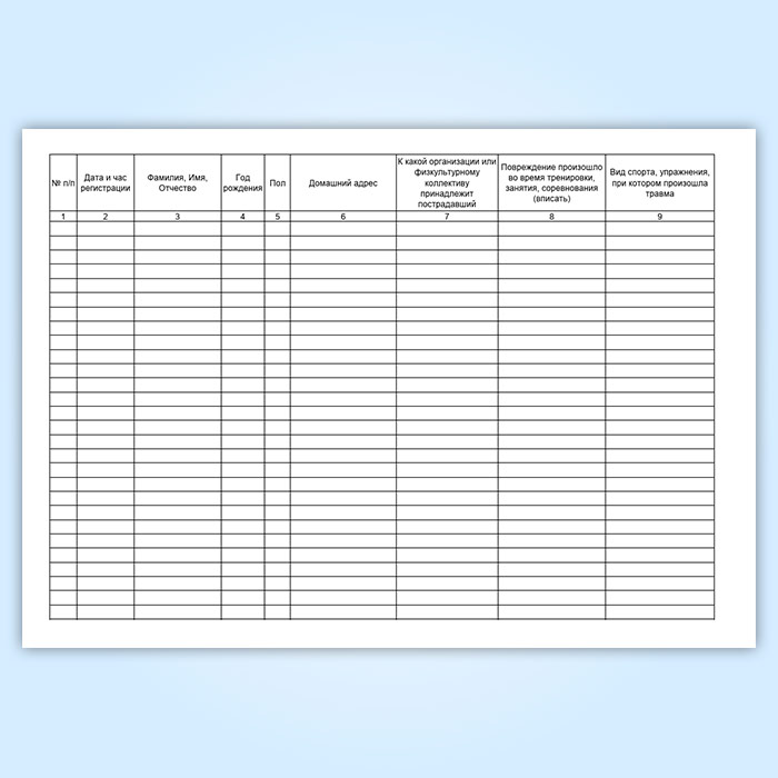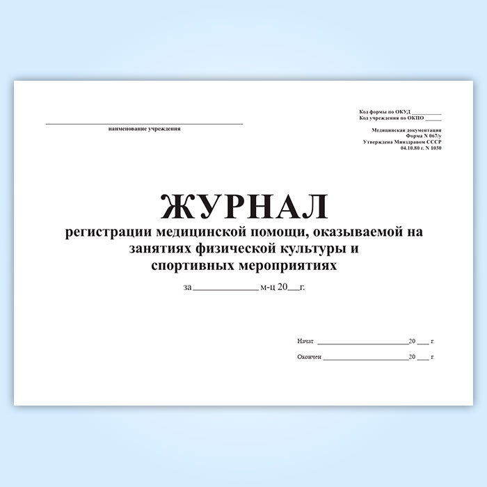 Журнал регистрации медицинской помощи, оказываемой на занятиях физической культуры и спортивных мероприятиях (форма 067/у) в Волгограде купить