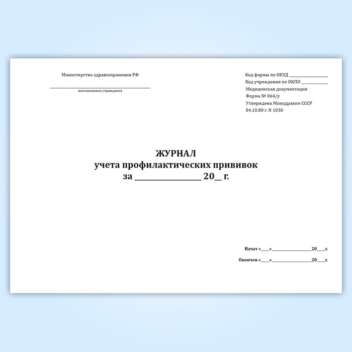 Журнал учета профилактических прививок (форма № 064/у) в Волгограде купить