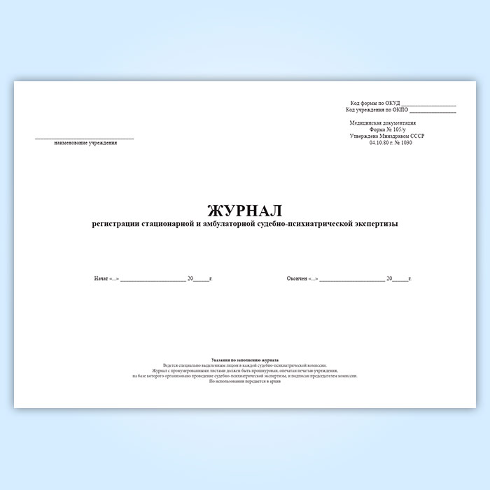 Журнал регистрации стационарной и амбулаторной судебно-психиатрической экспертизы (форма 105/у) в Волгограде купить