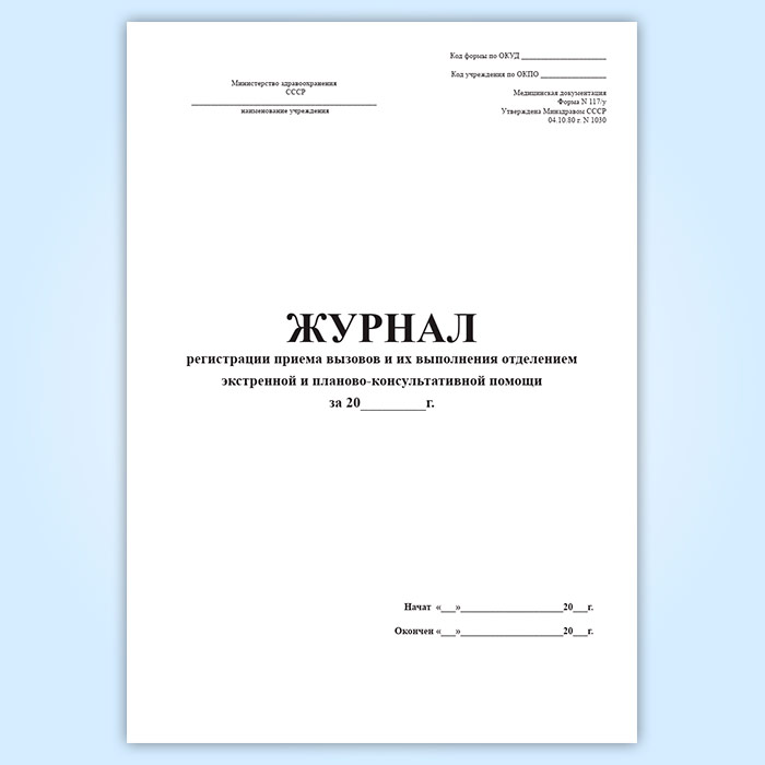 Журнал регистрации приема вызовов и их выполнения отделением экстренной и планово-консультативной помощи (форма 117/у) в Волгограде купить