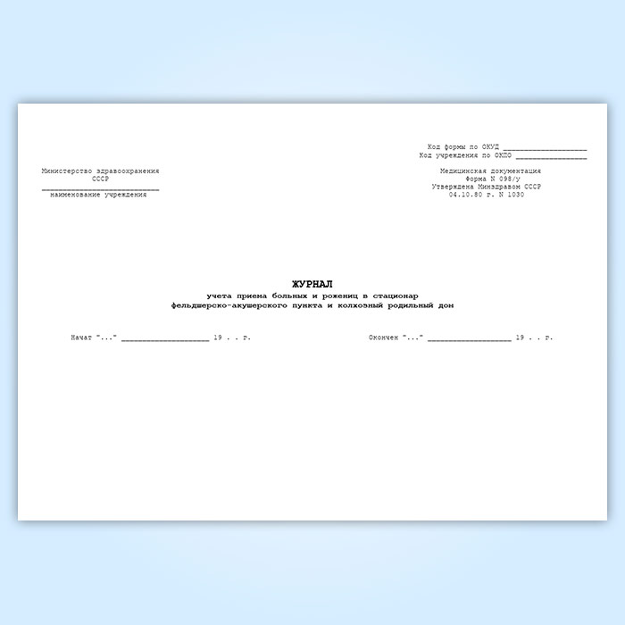 Журнал учета приема больных и рожениц в стационар фельдшерско-акушерского пункта, колхозного родильного дома (форма 098/у) в Волгограде купить