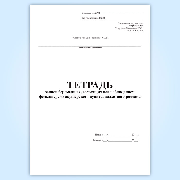 Тетрадь записи беременных, состоящих под наблюдением ФАП, колхозного роддома (форма 075/у) в Волгограде купить