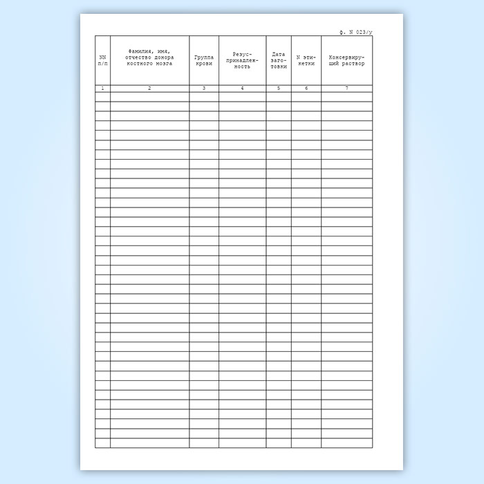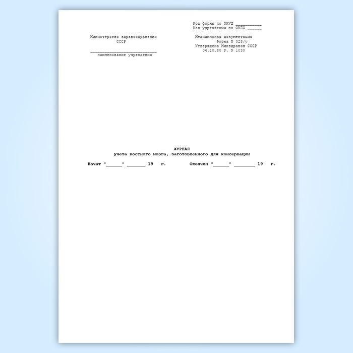 Журнал учета костного мозга, заготовленного для консервации (форма 023/у) в Волгограде купить