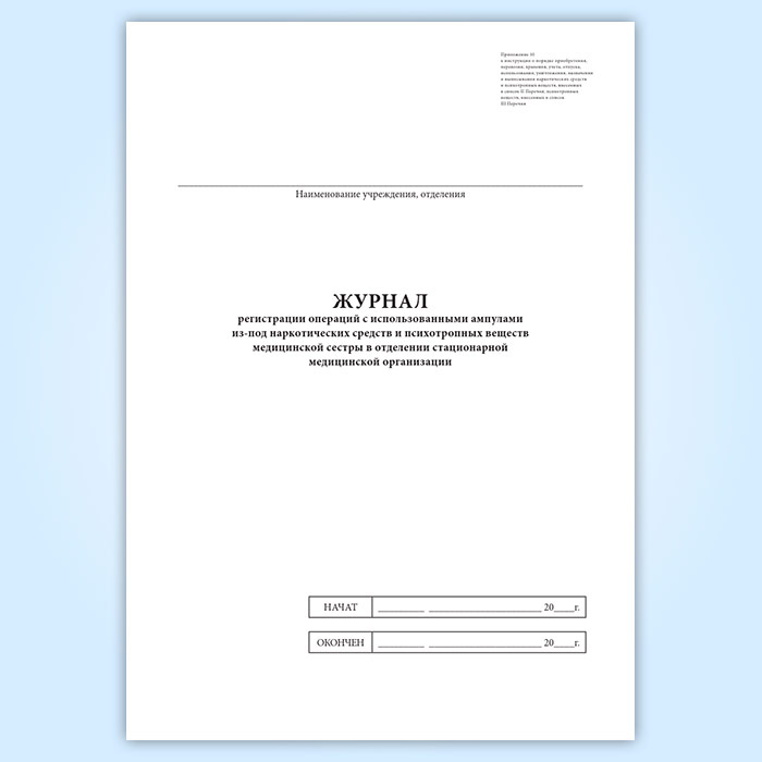 Журнал регистрации операций с использованными ампулами из-под наркотических средств и психотропных веществ медицинской сестры в отделении стационарной медицинской организации в Волгограде купить
