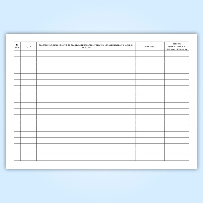 Журнал учета проведенных мероприятий по профилактике распространения коронавирусной инфекции COVID-19 в Волгограде купить