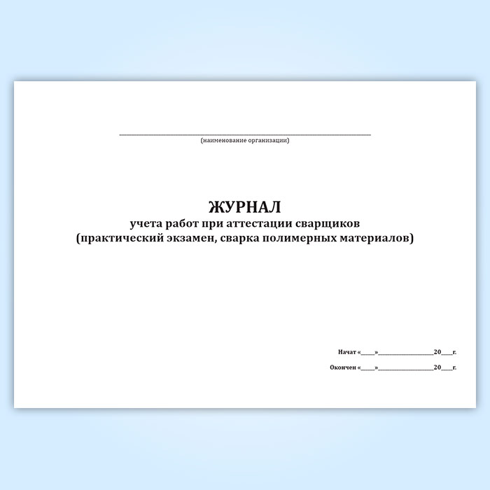 Журнал учета работ при аттестации сварщиков (практический экзамен, сварка полимерных материалов) в Волгограде купить
