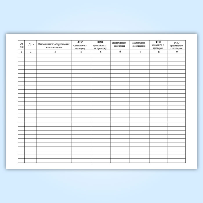 Журнал регистрации сдачи и выдачи оборудования и средств технического оснащения НАСФ на проверку в Волгограде купить