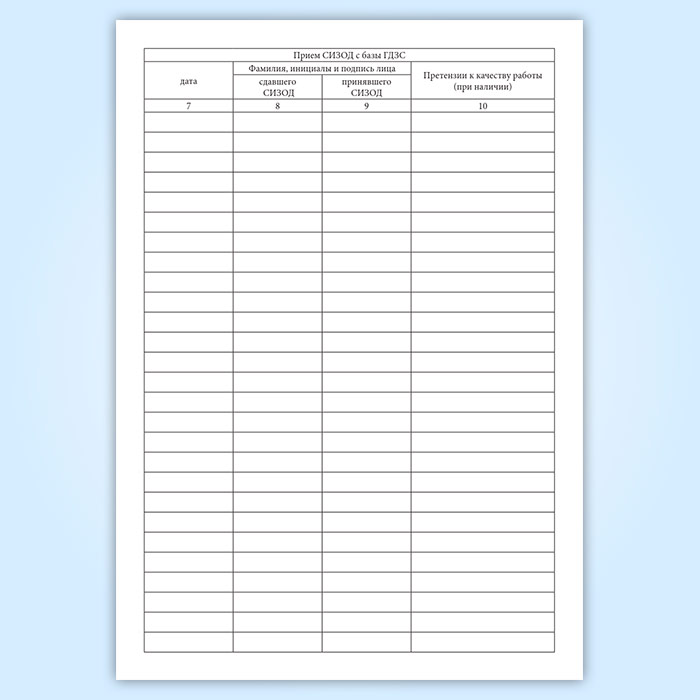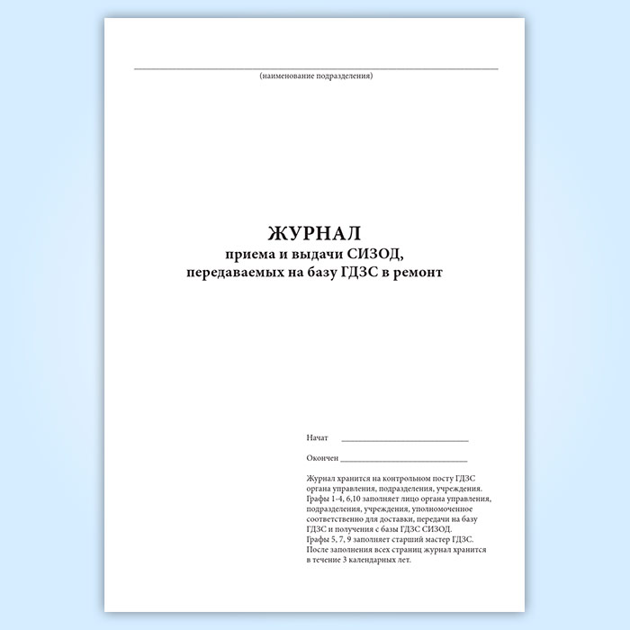 Журнал приема и выдачи СИЗОД, передаваемых на базу ГДЗС в ремонт в Волгограде купить