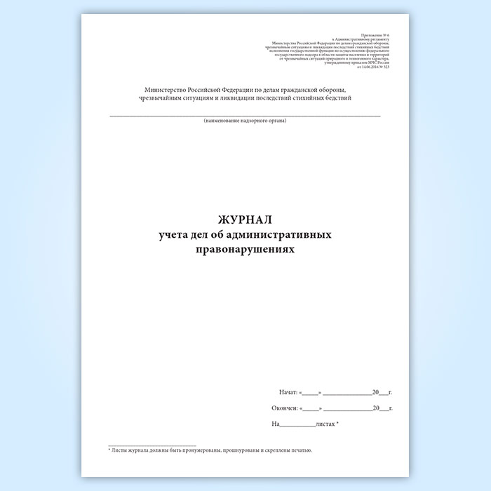 Журнал учета дел об административных правонарушениях (Приказ МЧС России от 14.06.2016 № 323) в Волгограде купить
