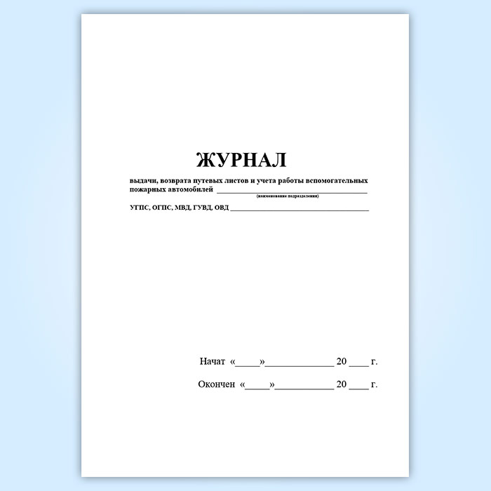 Журнал выдачи, возврата путевых листов и учета работы вспомогательных пожарных автомобилей в Волгограде купить