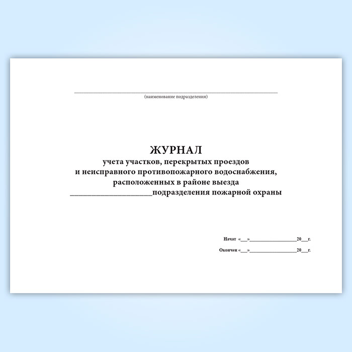 Журнал учета участков, перекрытых проездов и неисправного противопожарного водоснабжения, расположенных в районе выезда подразделения пожарной охраны в Волгограде купить