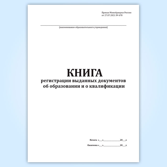 Книга регистрации выданных документов об образовании и о квалификации (Приказ Минобрнауки России от 27.07.2021 № 670) в Волгограде купить