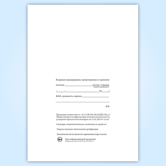 Вы получаете печатную продукцию прошнурованной и c местом для вашей печати в соответствии с действующими нормативными документами: