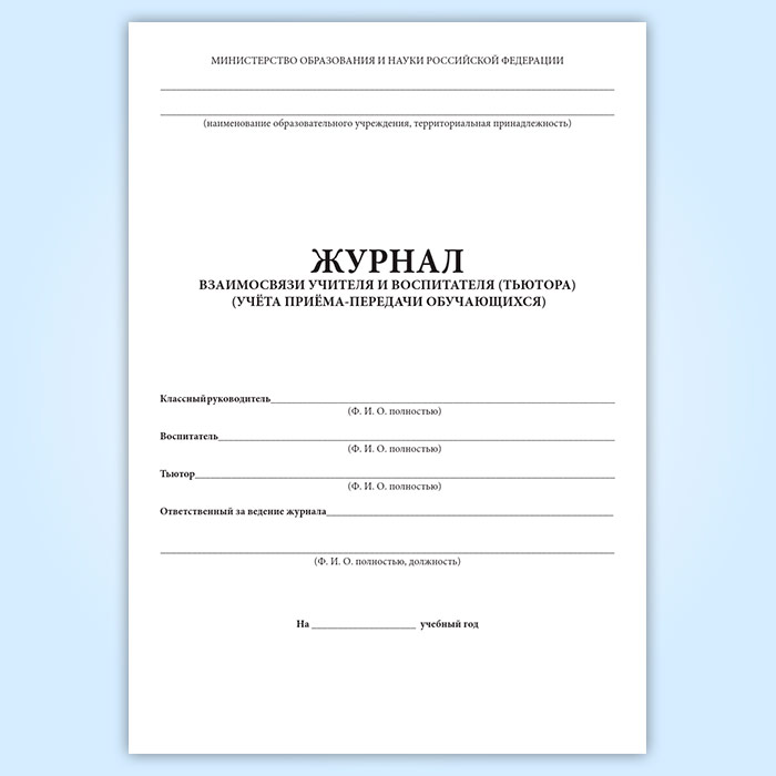 Журнал взаимосвязи учителя и воспитателя (тьютора) (учета-передачи учащихся) в Волгограде купить