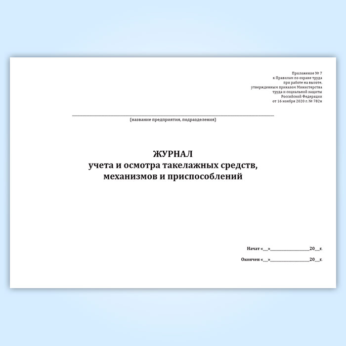 Журнал учета и осмотра такелажных средств, механизмов и приспособлений (Приказ Минтруда России от 16.11.2020 N 782н) в Волгограде купить