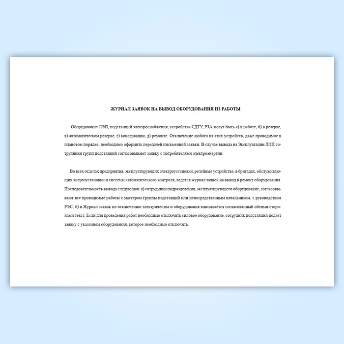 Журнал заявок на вывод оборудования из работы в Волгограде купить