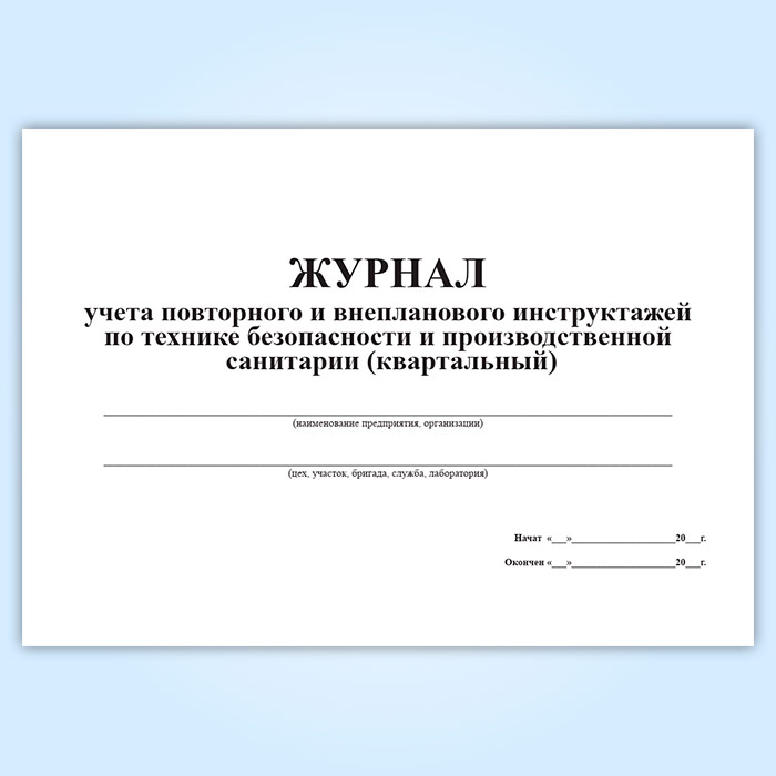 Журнал учета повторного и внепланового инструктажей по технике безопасности и производственной санитарии (квартальный) в Волгограде купить