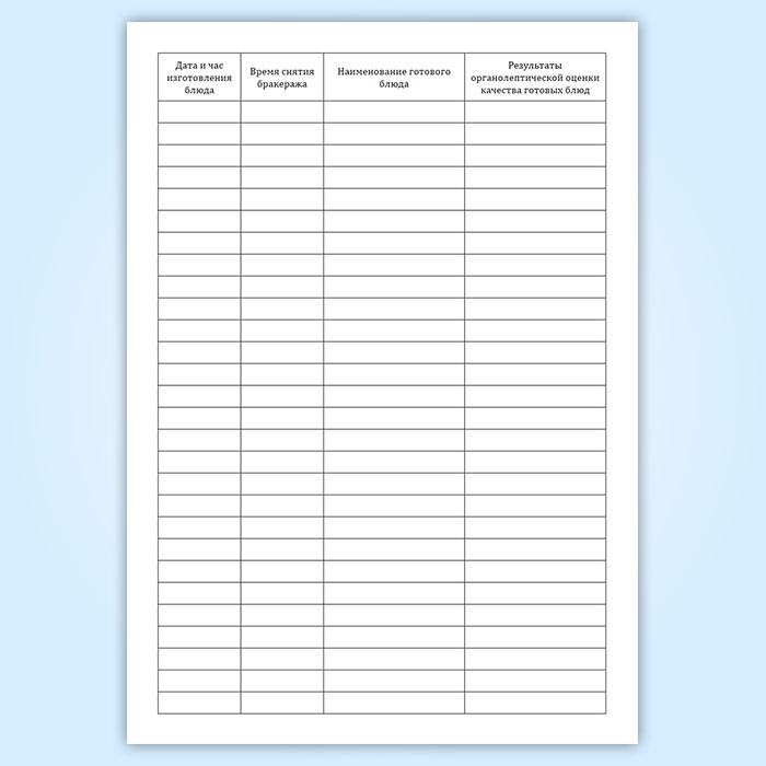 Журнал бракеража готовой пищевой продукции (СанПиН 2.3/2.4.3590-20) в Волгограде купить