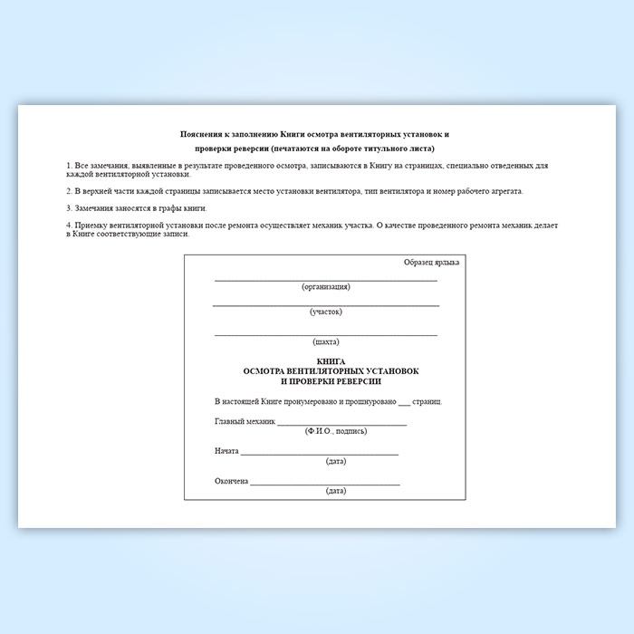Книга осмотра вентиляторных установок и проверки реверсии в Волгограде купить