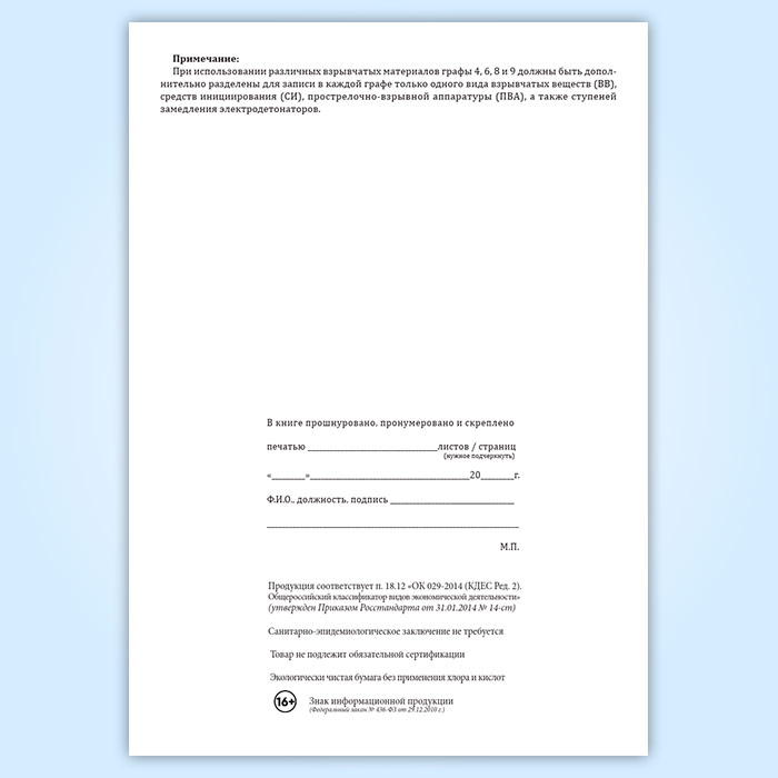 Книга учета выдачи и возврата взрывчатых материалов в Волгограде купить