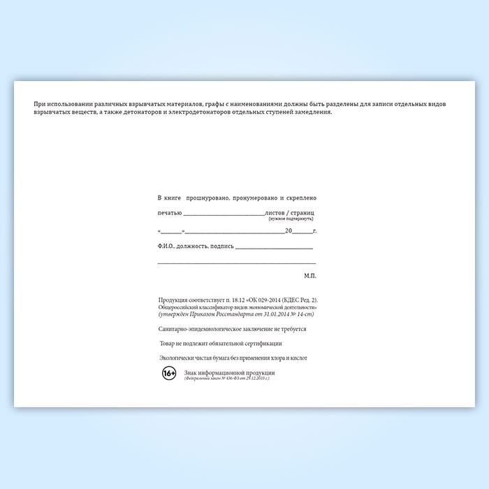 Книга учета прихода и расхода взрывчатых материалов участкового пункта хранения ВМ в Волгограде купить
